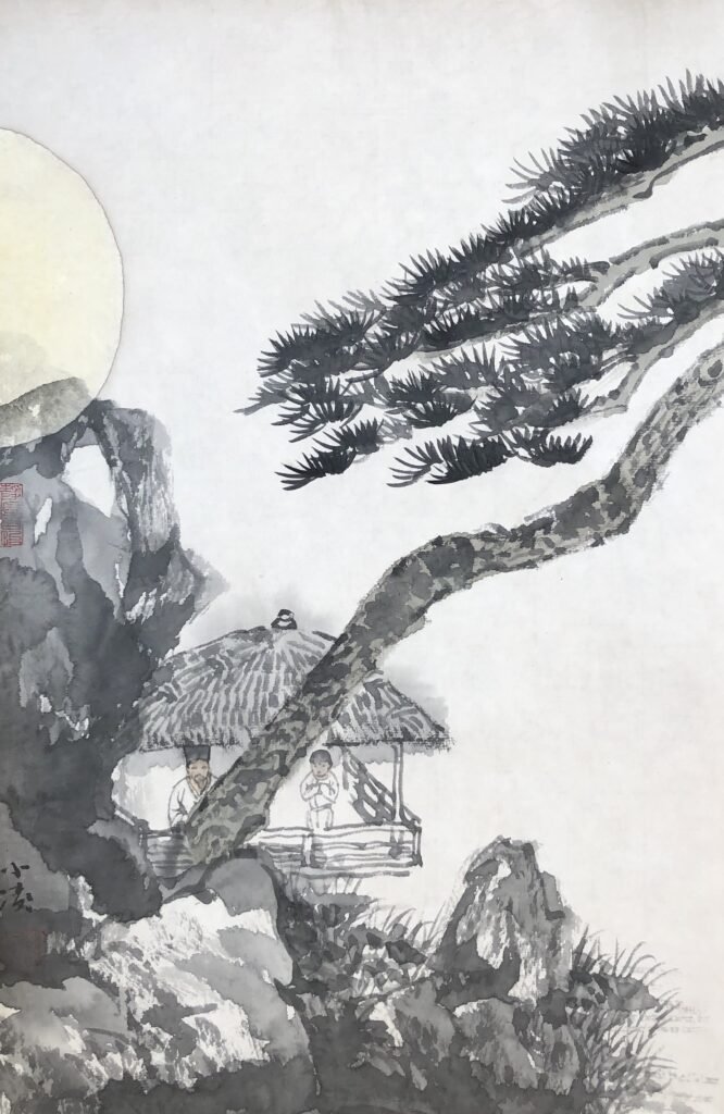 我画中的这个情景不是一个真实的情景。这个情景似曾相识,如梦似幻,用以寄托我的向往。是故我把我的作品起名为“留园遗拾”。这个“园”留在我的潜意识里,凝结着我对故国的臆想。似真似幻,如影随形。这些几尽在这个时代消失的图景,吸引我在往后的岁月中去捕捉,去接近。我心里明白,我还远未抵达那个“仙境”。艺术之神就是一缕仙气,远看清晰,接近却无。山路漫漫,终其一生都只能是在寻觅的路上,拾到一两个仙人遗落的树枝吧!