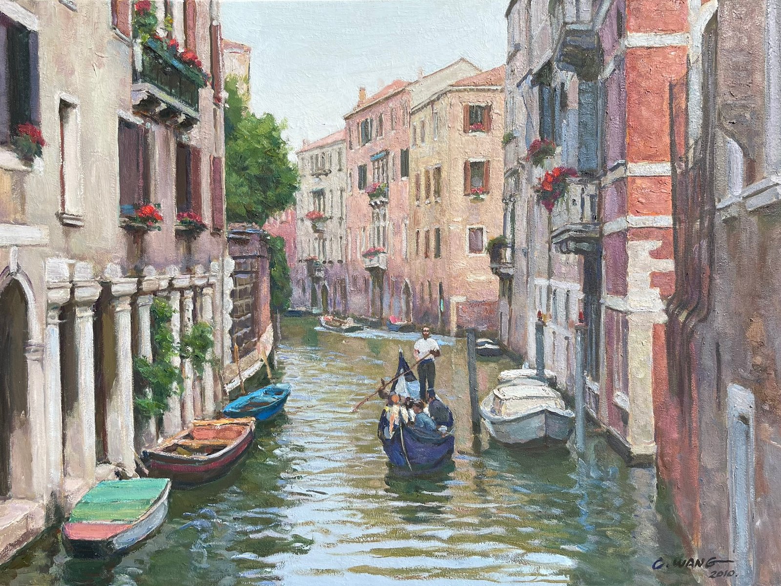 Wang’s impressionist mastery weaves layers of luminous glaze, evoking the city’s poetic hush with Eastern-inflected grace. Celebrated for his romantic European reveries, this work captures Venice’s soulful allure, perfect for evoking wanderlust in refined spaces.